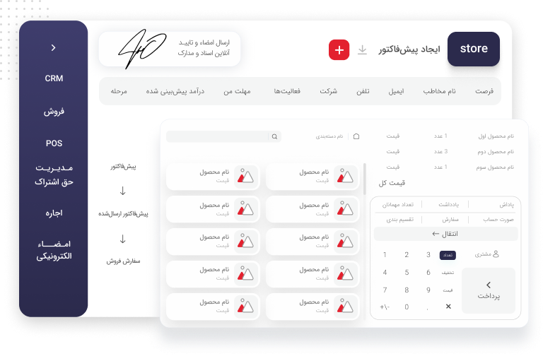 کسب و کار الکترونیکی جامع و یکپارچه متناسب با نیاز شما را ایجاد میکنیم و با پشتیبانی و ارائه خدمات مورد نیاز، در مسیر سیستم سازی درست کسب و کارتان، همراهیتان میکنیم.