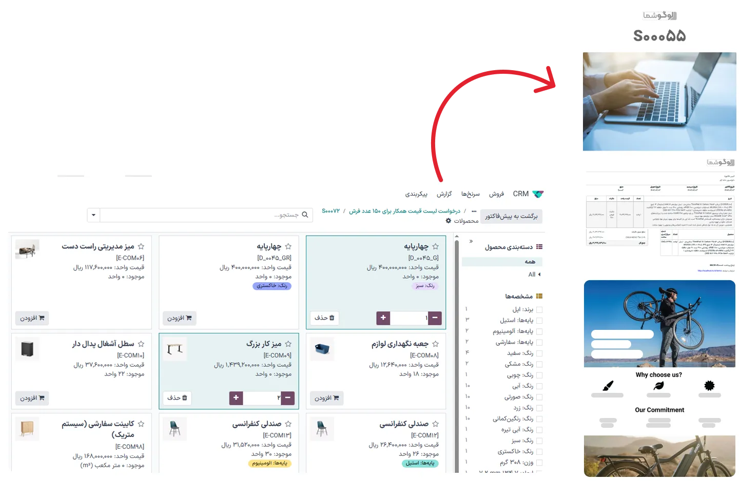 با رابط کاربری ساده و کارآمد سازمانیار، انتخاب محصولات از کاتالوگ و تهیه پیشفاکتور به فرآیندی بسیار سریع و حرفهای تبدیل شده است. سیستم بهصورت خودکار اطلاعات مشتری، مالیات، تخفیفها و شرایط پرداخت را اضافه میکند و پیشفاکتوری ارائه میدهد که هم از نظر ظاهری جذاب است و هم از نظر محتوایی دقیق.