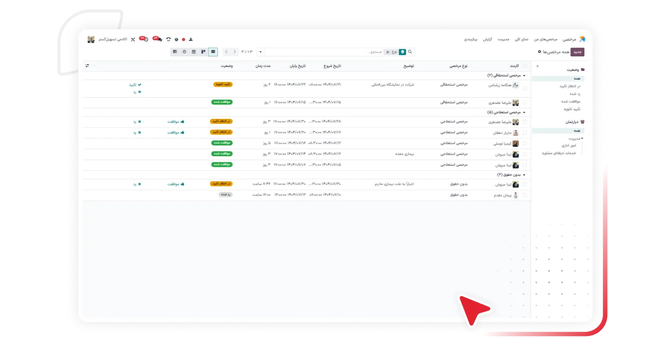 از لحظه تخصیص سهم مرخصی تا ثبت، بررسی و تأیید نهایی، همه مراحل در بستری شفاف، خودکار و قابل