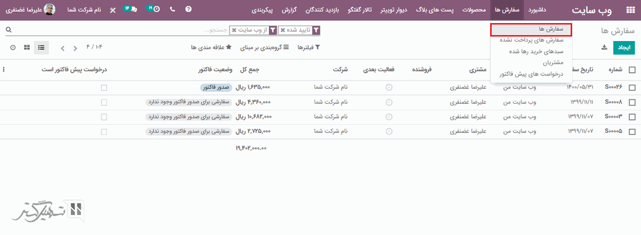 به محض اینکه پرداخت ها توسط درگاه های بانکی پرداخت تایید شدند، اودوو به طور خودکار سفارشات را تأیید می کند. با این عمل، فرآیند تحویل شروع می شود. در صورتی که شما بر اساس تعداد سفارش داده شده فاکتور صادر کرده اید، باید سفارش را نیز فاکتور کنید.