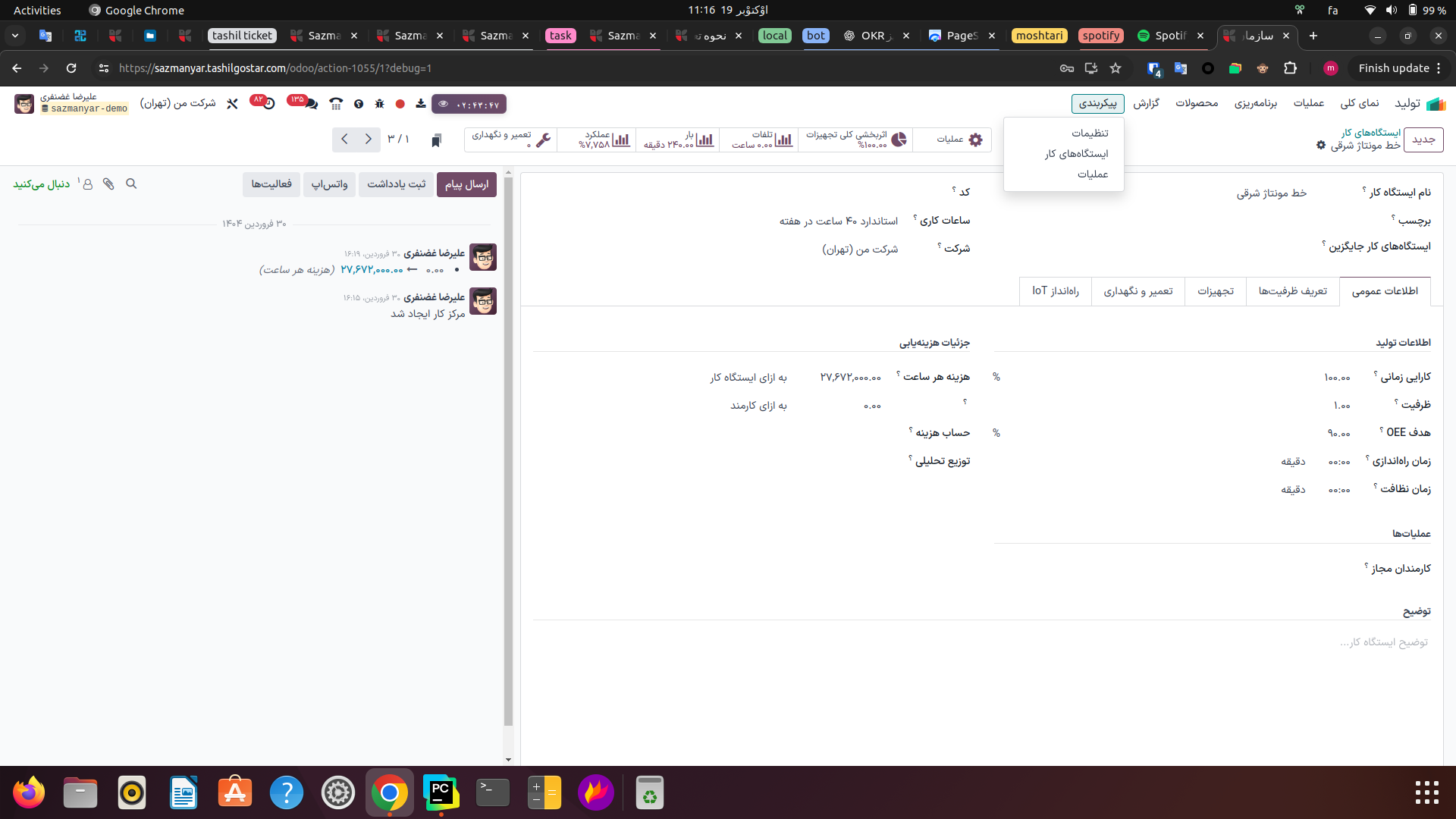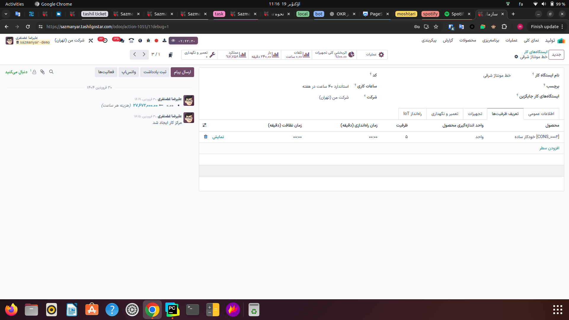 در اینجا قصد دارم بهصورت کامل و کاربردی توضیح دهم که در اودوو هر مرکز کار چگونه ظرفیتدهی میشود و منظور از تب «تعریف ظرفیتها چیست، چه زمانی از آن استفاده میکنیم و چه تأثیری روی برنامهریزی تولید دارد.