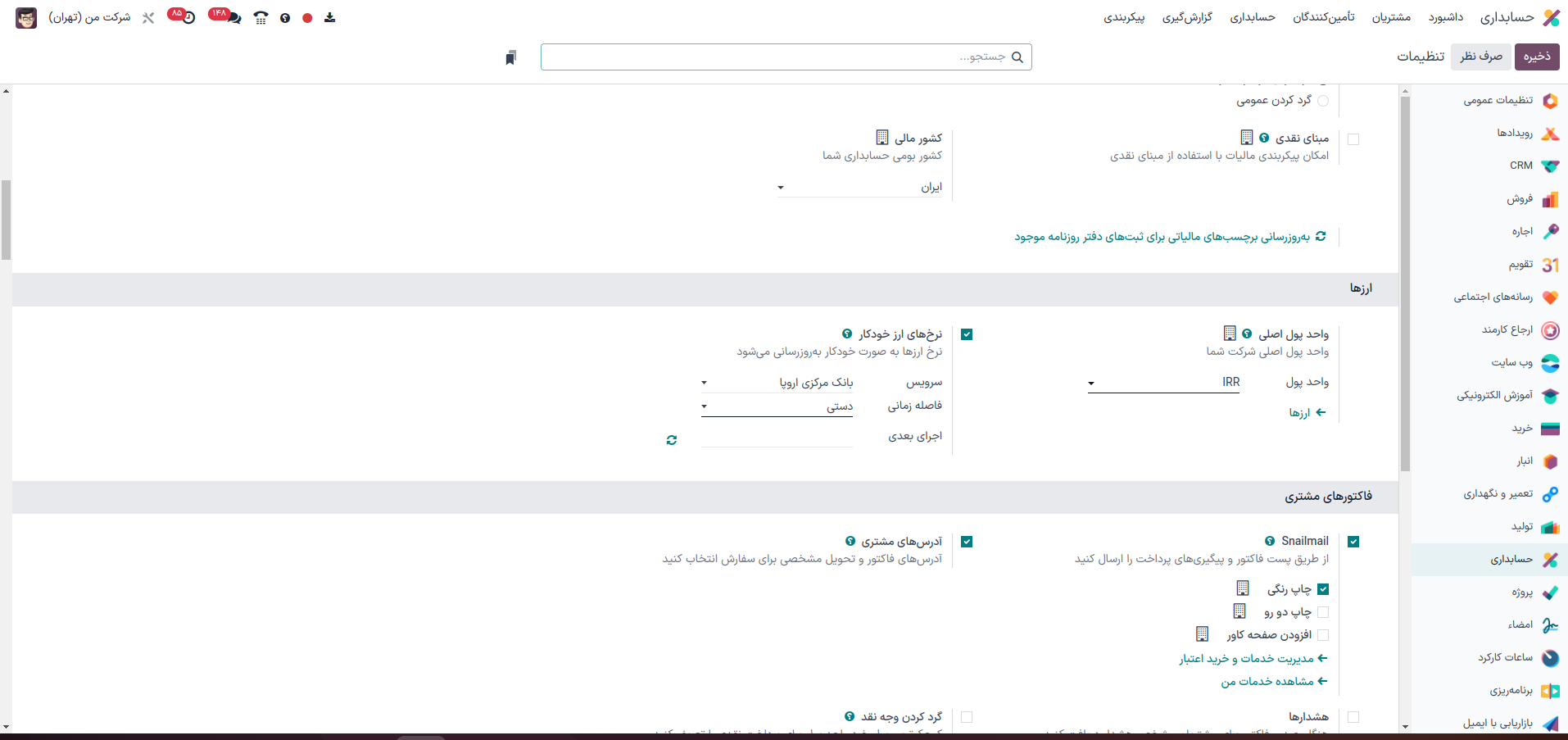 همانطور که در تصویر بالا مشاهده میکنید، ارز شرکت به IRR (ریال ایران) تنظیم شده است.