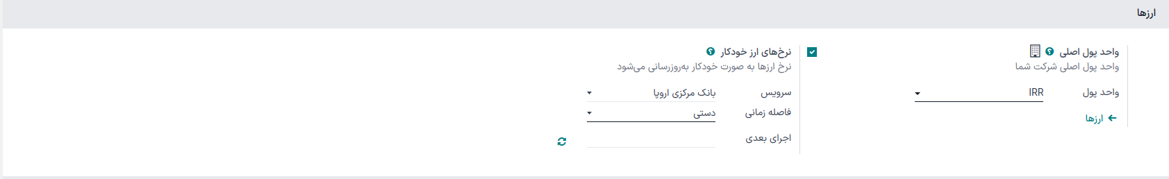 برای تنظیم ارزها در ماژول حسابداری اودوو: