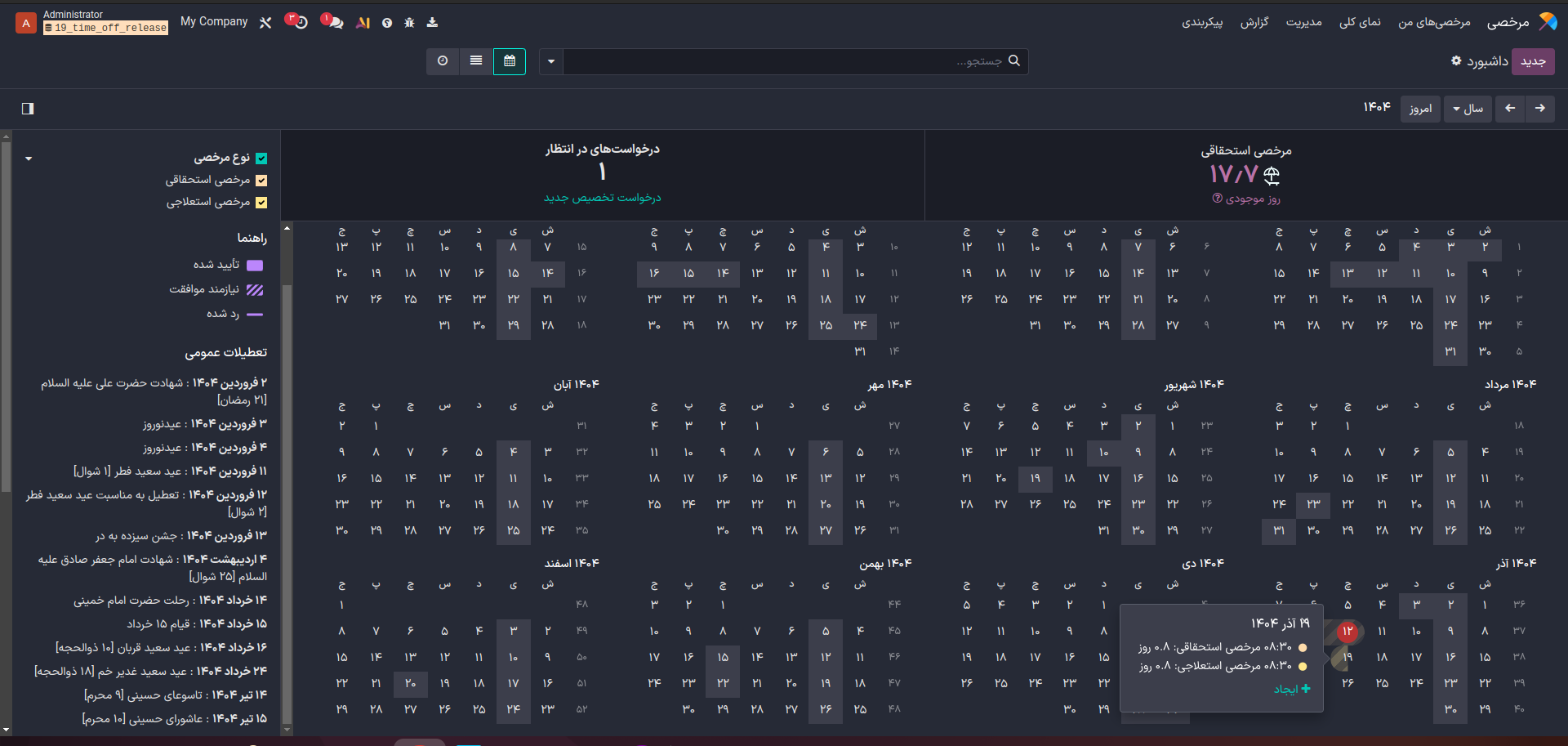 لطفا قابلیتهای جدید ماژول مرخصی را در نسخهی ۱۹ اودوو توضیح دهید.