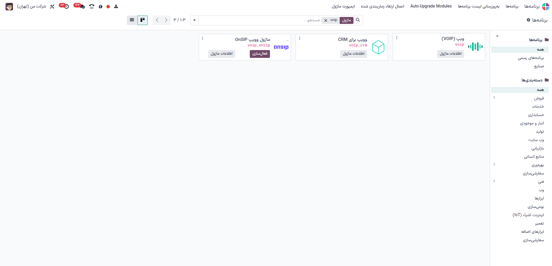 برای استفاده از voip ابتدا ماژول مربوطه رو نصب کنید