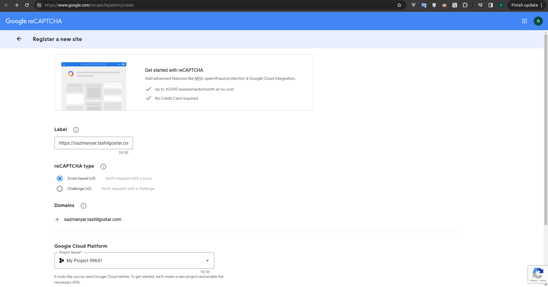 برای این کار کافیست دوباره برای وب سایت خود توکن های reCAPTCHA را فعال کنیم مراحلی که باید طی شود بدین ترتیب است: