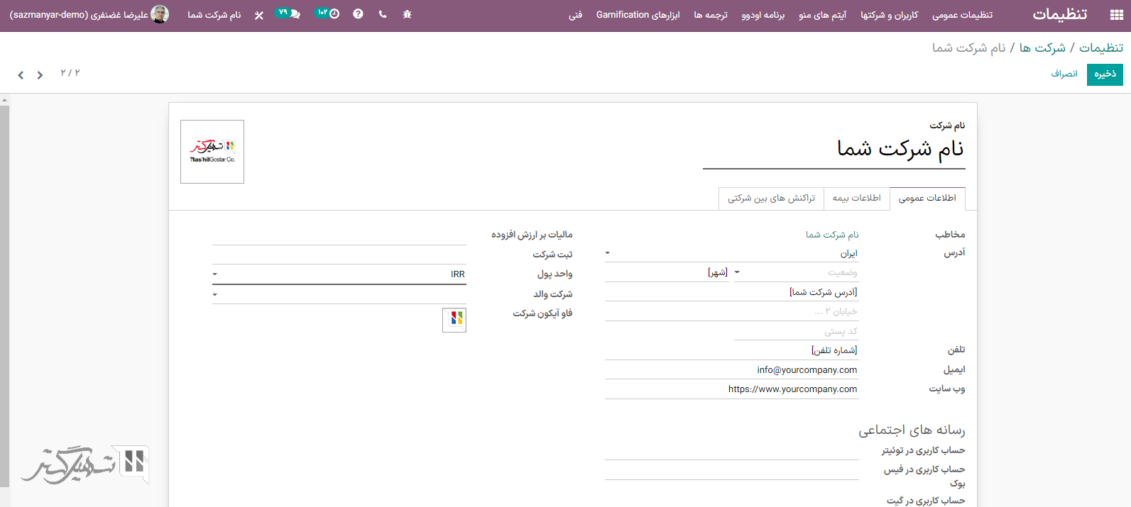 اول از همه اطمینان حاصل کنید که هر کدام از شرکتهای شما به درستی به لحاظ موارد زیر تنظیم شده باشد: