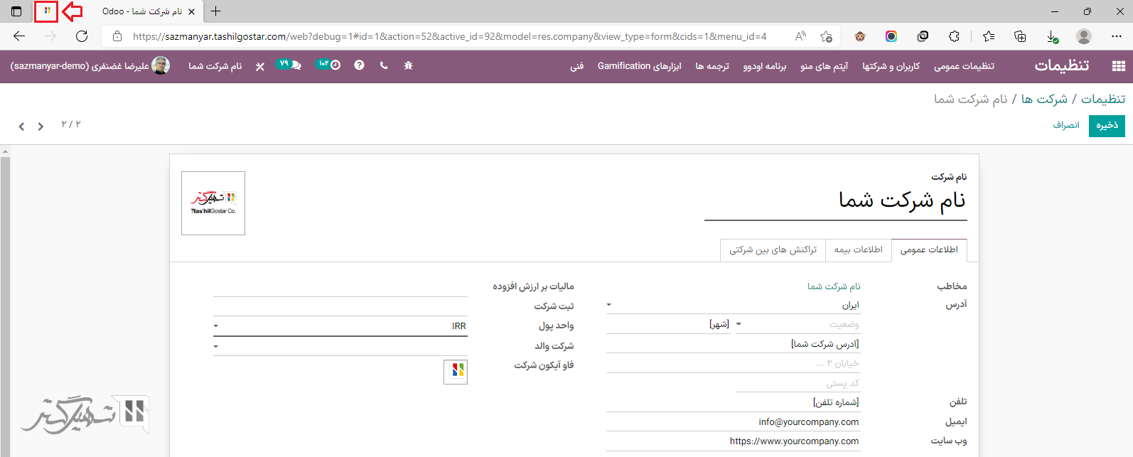 نکته: حالت توسعه دهنده را برای انتخاب یک فاوآیکون برای هر کدام از شرکتهایتان فعال کنید و از طریق تبهای مرورگر به راحتی آنها را شناسایی کنید. اندازه فایلهای فاوآیکون خود را روی 16×16 یا 32×32 پیکسل تنظیم کنید. JPG، PNG، GIF و ICO پسوندهای پذیرفته شده هستند.