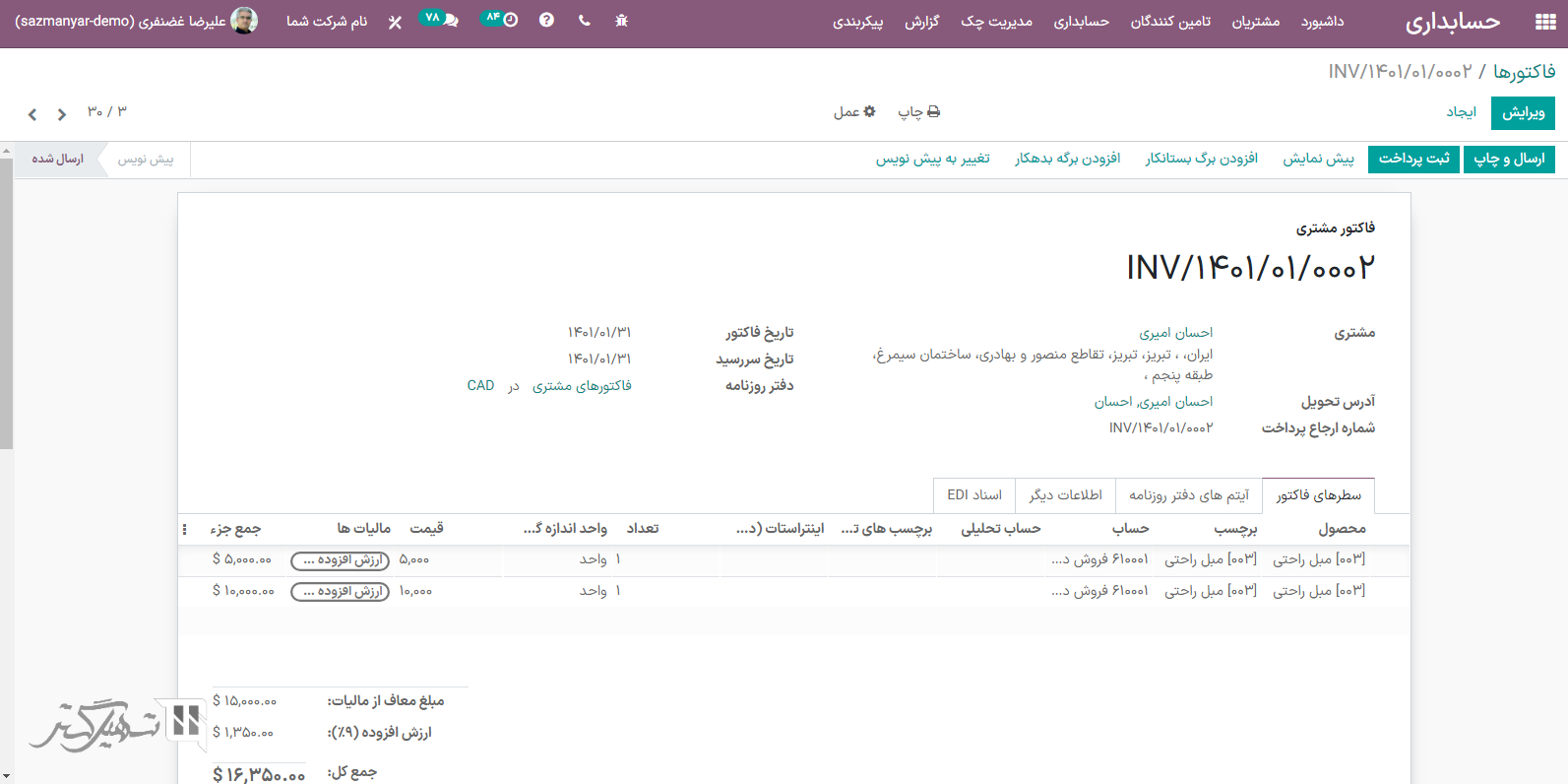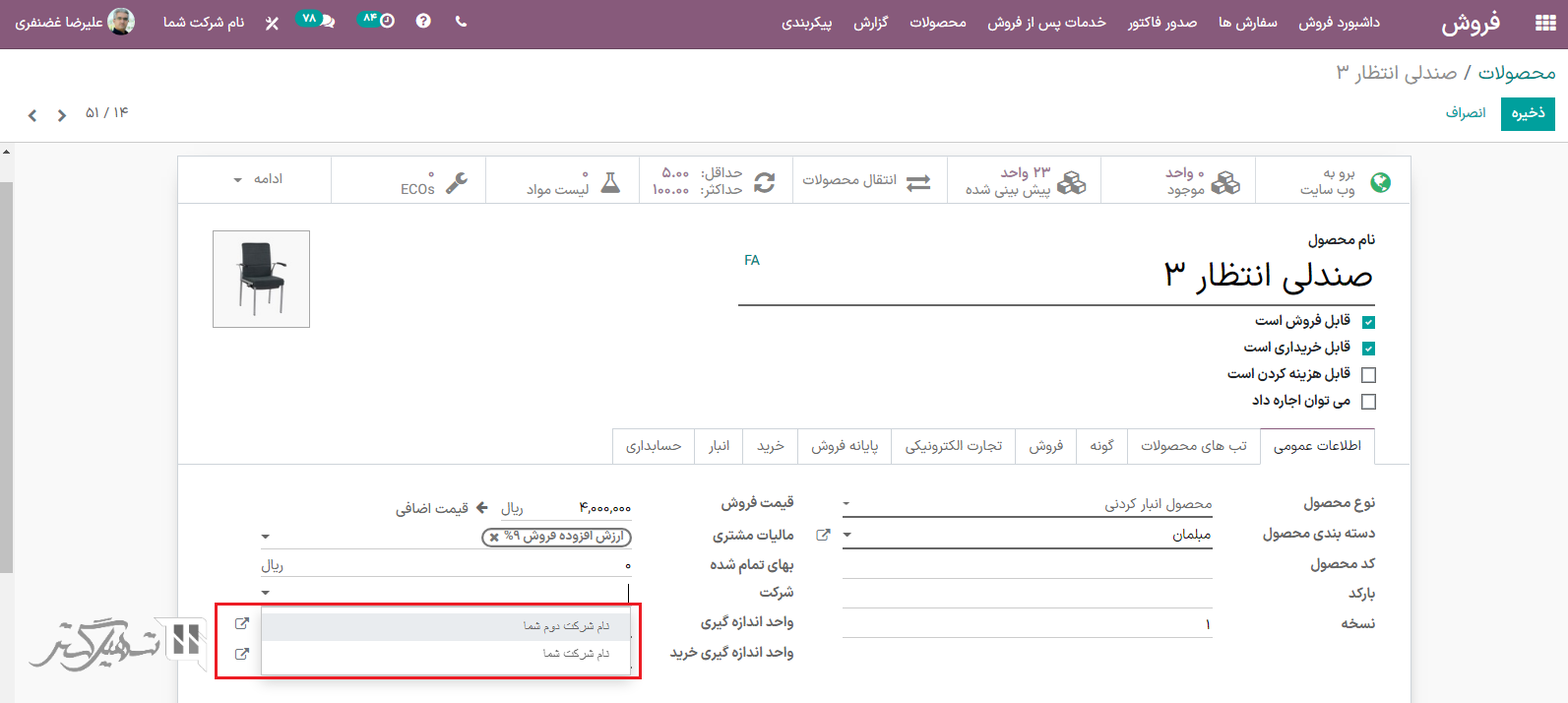 مثال: در صورت ویرایش سفارش فروش صادر شده تحت نام شرکت شما در حین کار در محیط نام شرکت دوم شما، تغییرات تحت نام شرکت شما (شرکتی که سفارش فروش از آن صادر شده است) اعمال میشود.