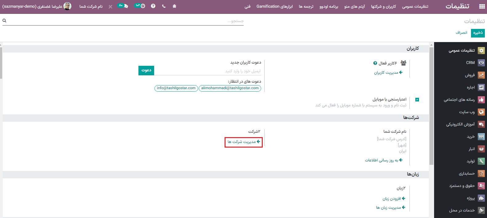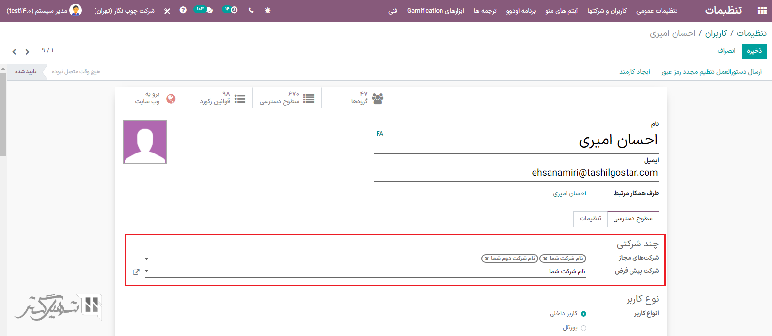 با ایجاد شرکتها، حق دسترسی کارکنان خود را برای چند شرکت مدیریت کنید.