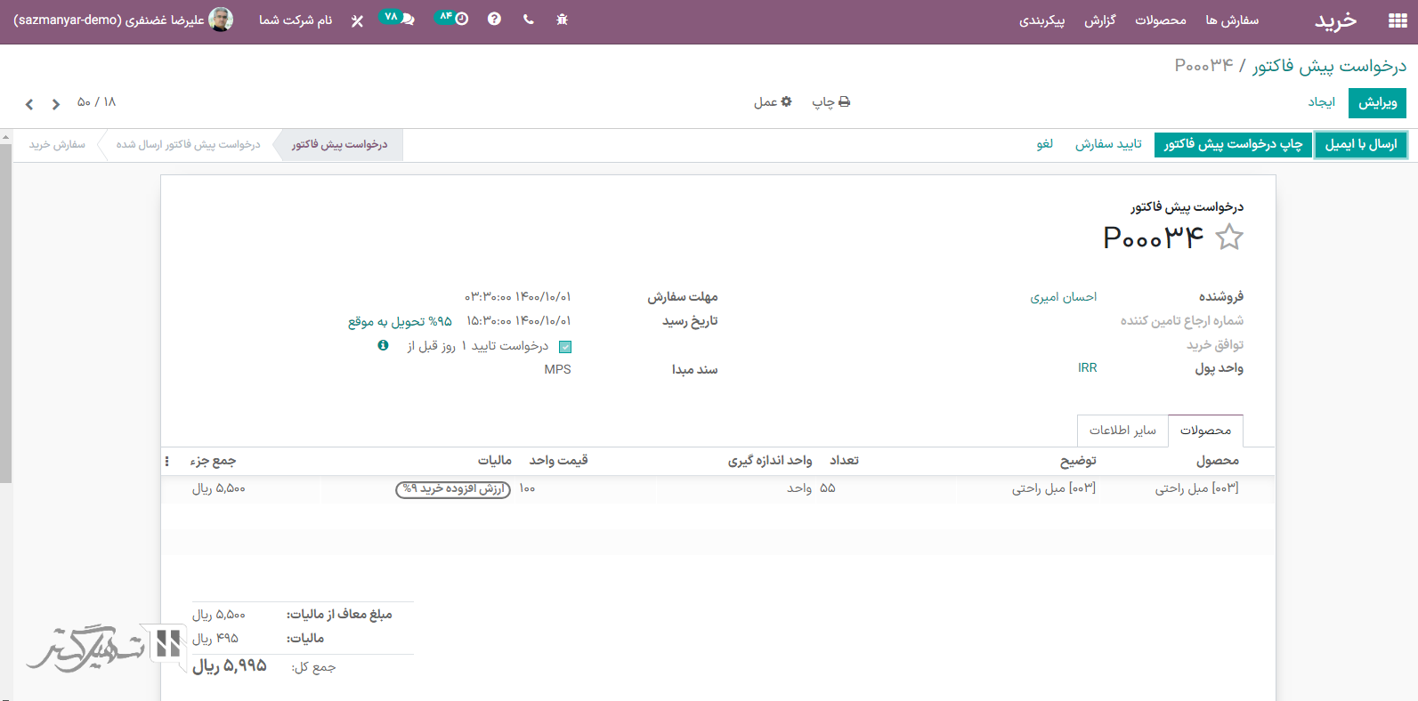 مثال: با ارسال فاکتور در "نام شرکت دوم شما" برای "نام شرکت شما"، به طور خودکار یک صورتحساب فروشنده در "نام شرکت شما" ایجاد میشود.