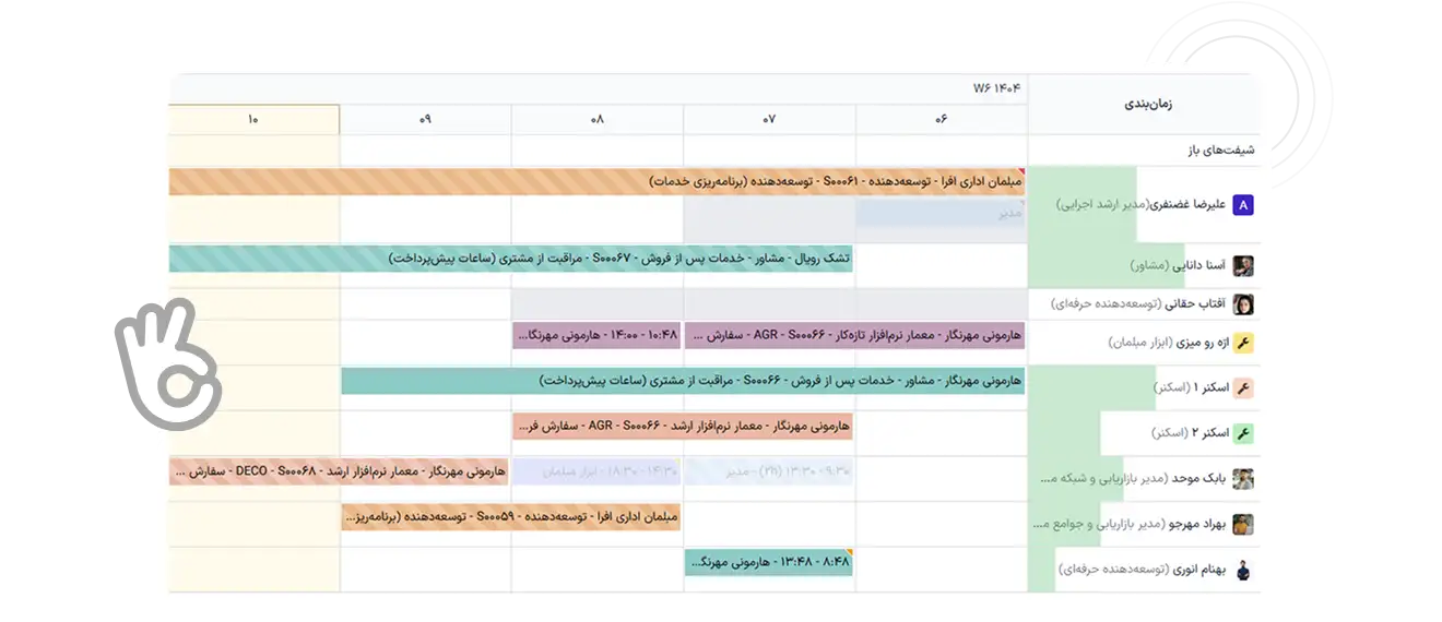 برای همکاران و منابع مواد شیفتهای کاری ایجاد کنید. از برنامهریزی خودکار، شیفتهای تکراری، الگوها و نقشها برای افزایش بهرهوری استفاده کنید.