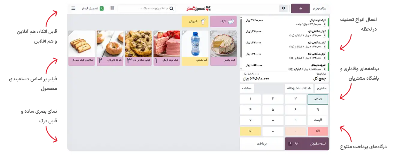رابط کاربری ساده: در عرض چند ثانیه سیستم فروش خود را راهاندازی کنید و در عرض چند دقیقه از آن استفاده کنید. فرایند مدیریت فروش در نانوایی بهطور چشمگیری سریع و آسان است.