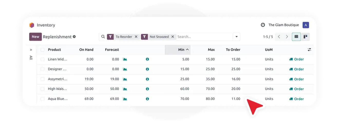 با مدیریت موجودی بدون دردسر با بروزرسانی لحظهای سطح موجودی و تأمین خودکار موجودی، دیگر نگران کمبود کالا نخواهید بود و همیشه موجودی را بهطور دقیق مدیریت خواهید کرد.