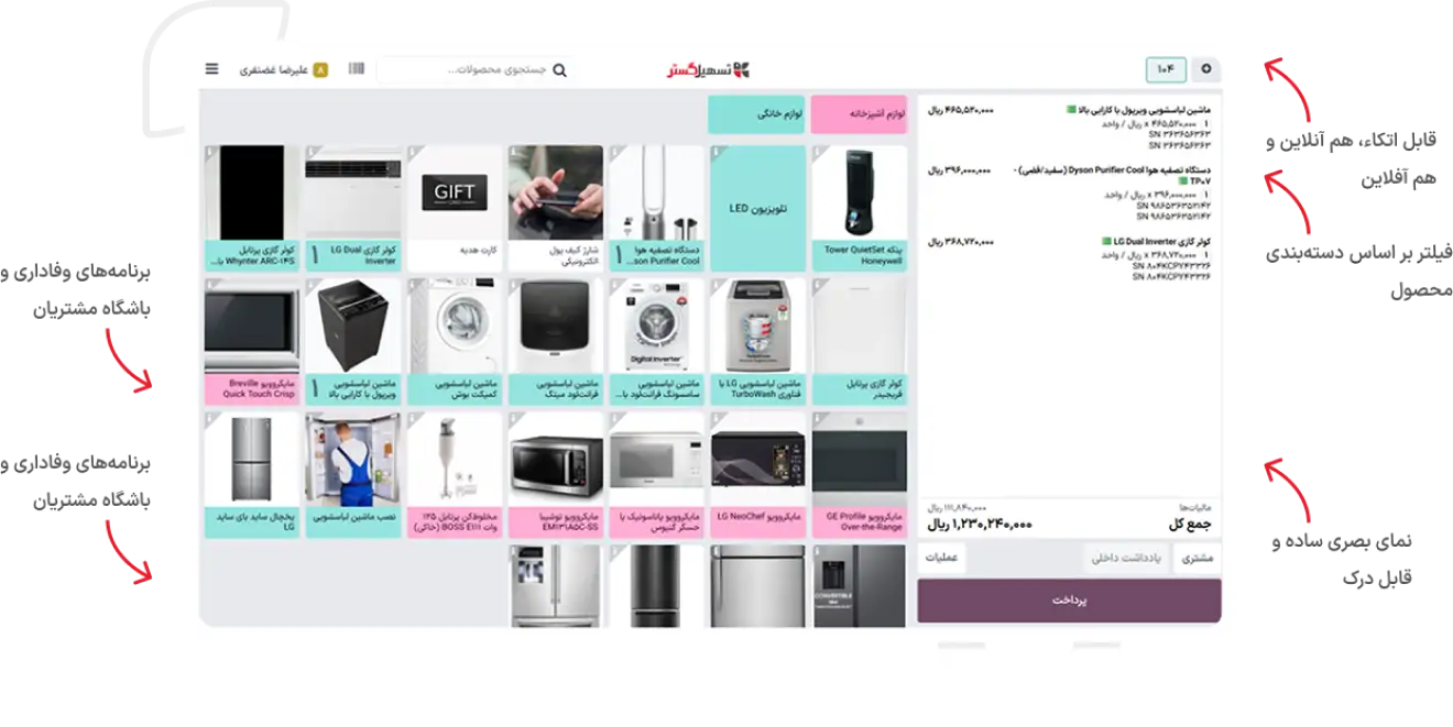 سیستم پایانه فروش (PoS) سازمانیار بهگونهای طراحی شده که هر کسی میتواند آن را در عرض چند دقیقه یاد بگیرد و مجموعهای از گزینههای پیشرفته را در اختیار شما قرار میدهد. با استفاده از این سیستم، میتوانید هر نوع تراکنشی را با سهولت مدیریت کنید و تمرکز خود را بر چیزی که اهمیت دارد، یعنی مشتریان، بگذارید. سازمانیار به شما کمک میکند تا فرآیندهای فروش را سریع و بدون مشکل انجام دهید و تجربهای حرفهای و کاربرپسند برای مشتریان خود فراهم کنید.