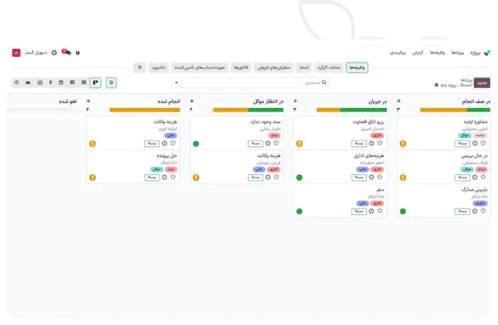 پس از فروش خدمات، سازمانیار بهطور خودکار پروژهها و وظایف مربوط به هر پرونده را ایجاد میکند.