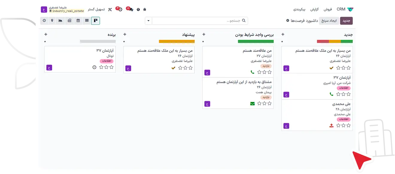 مدیریت مؤثر فرصتهای تجاری و مشتریان بالقوه: با استفاده از ابزارهای پیشرفته و فرمهای وبسایت، سرنخهای جدید ایجاد میشوند یا میتوانید آنها را بهصورت دستی وارد کنید. این ویژگی به شما کمک میکند تا از هر مراجعهکننده اطلاعات کاملی داشته باشید و پیگیریهای لازم را بهموقع انجام دهید.