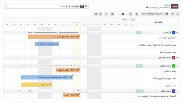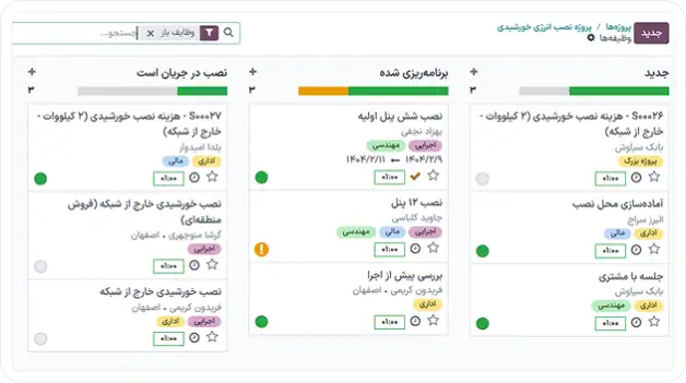 با فروش هر محصول، پروژه نصب بهصورت خودکار ایجاد میشود. تمام جزئیات از جمله اطلاعات محصول، زمانبندی، و اطلاعات تماس مشتری در یک سیستم متمرکز ذخیره میشود.