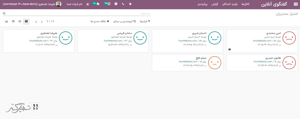 وضعیت امتیازدهی مشتری در پنجره گفتگو برای اپراتور نشان داده میشود.