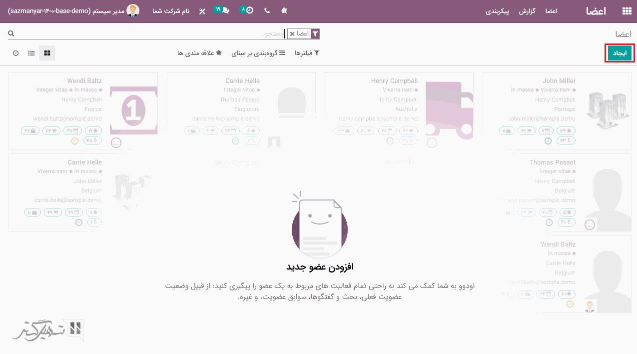 کاربر می تواند از طریق ماژول اعضا> اعضا> با کلیک بر روی دکمه "ایجاد"، به راحتی در چند مرحله یک اعضای جدید ایجاد کند:
