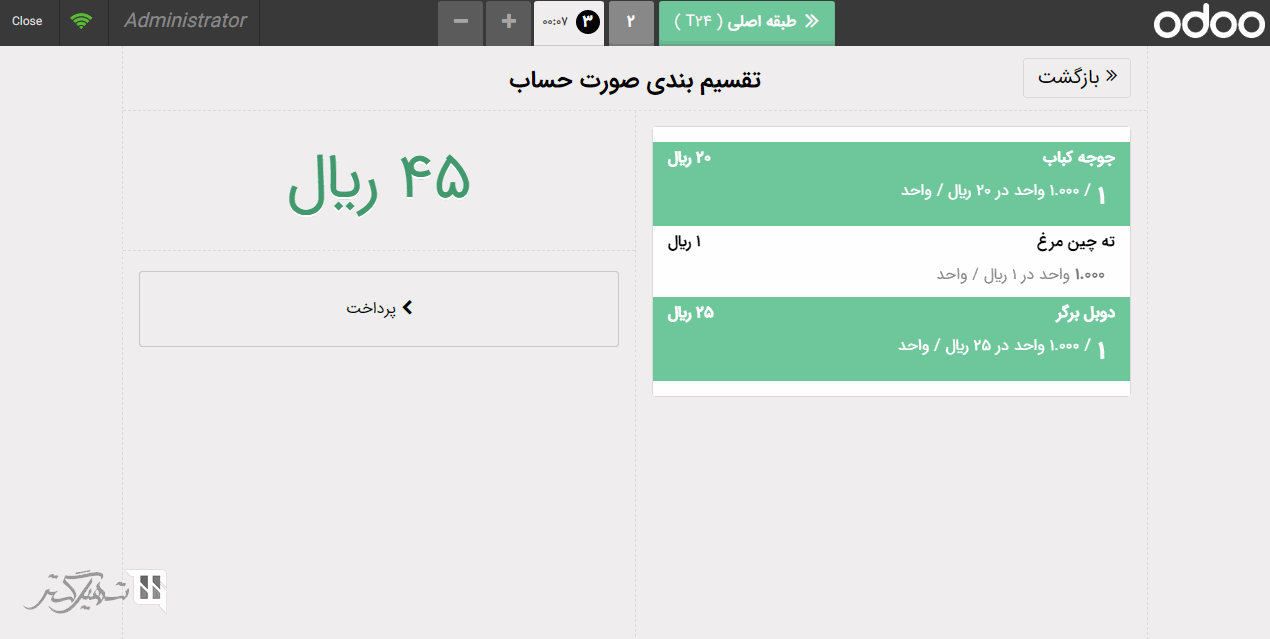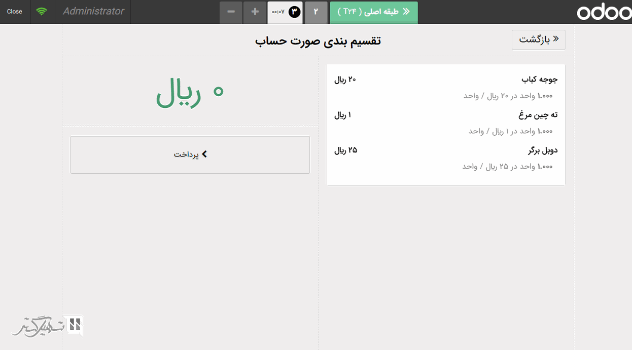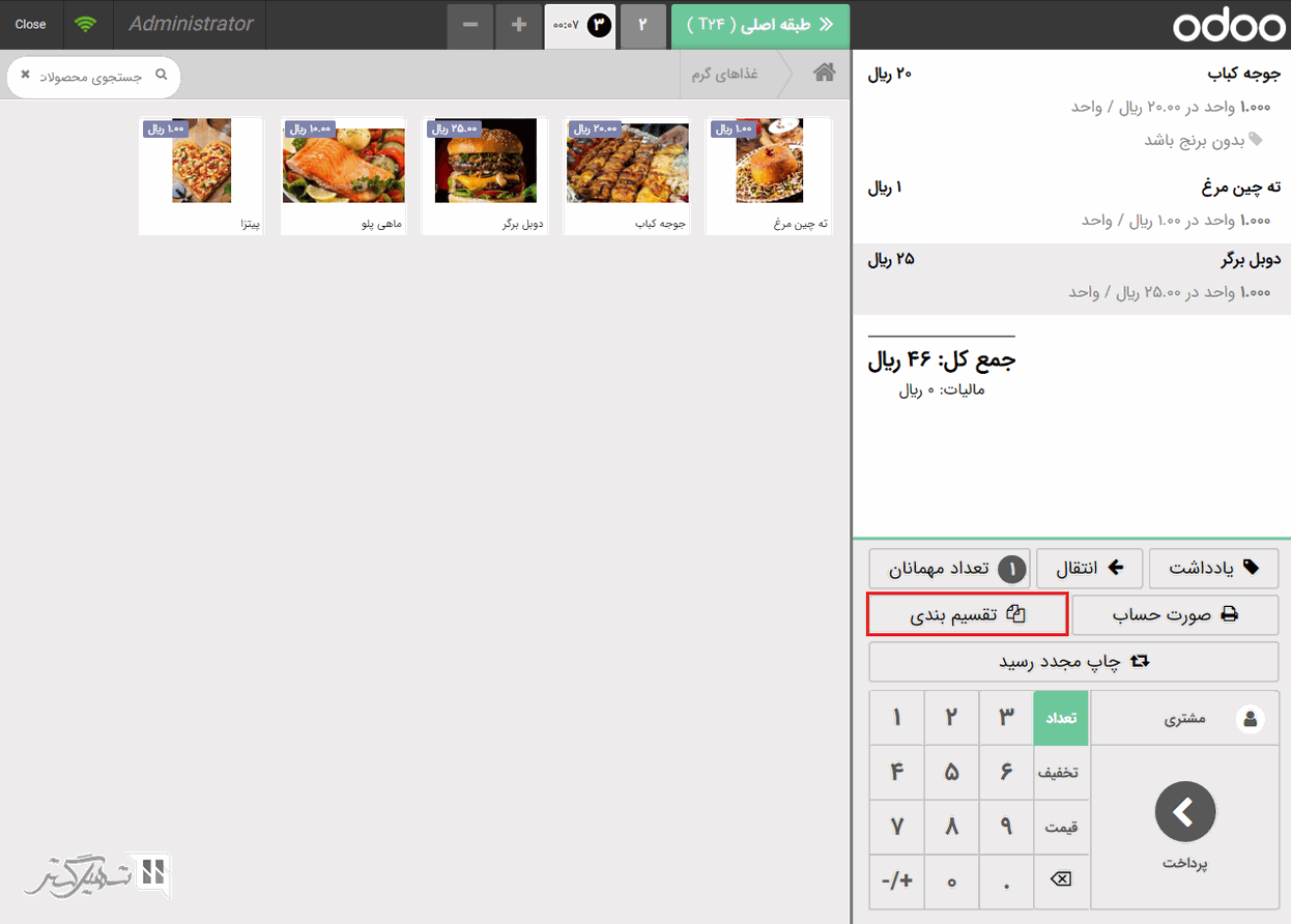 اکنون اگر به رابط پایانه فروش خود وارد شوید، یک دکمه " تقسیم بندی" مشاهده خواهید کرد: