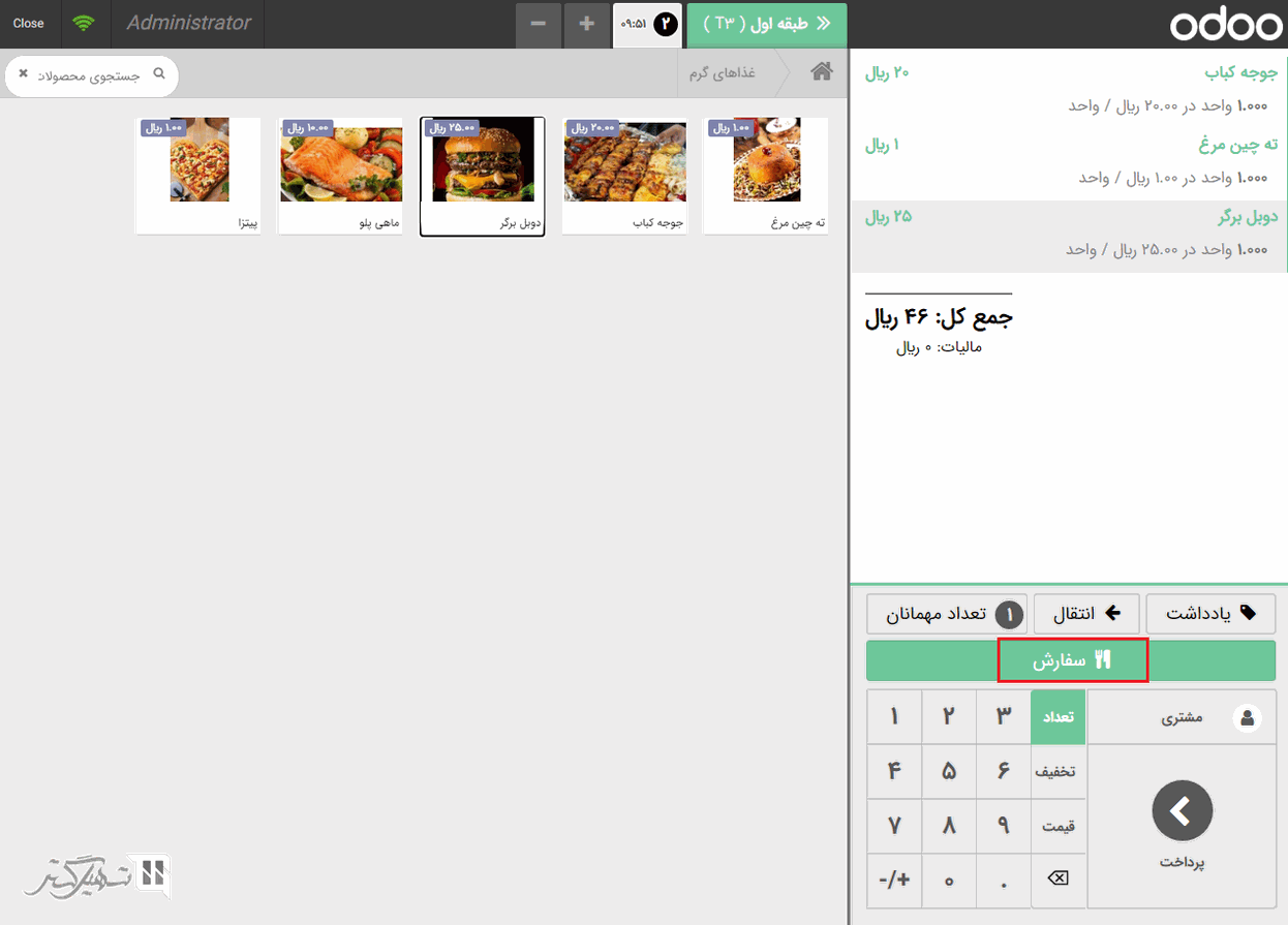 اکنون، شما در رابط پایانه فروش خود یک دکمه " سفارش" دارید.