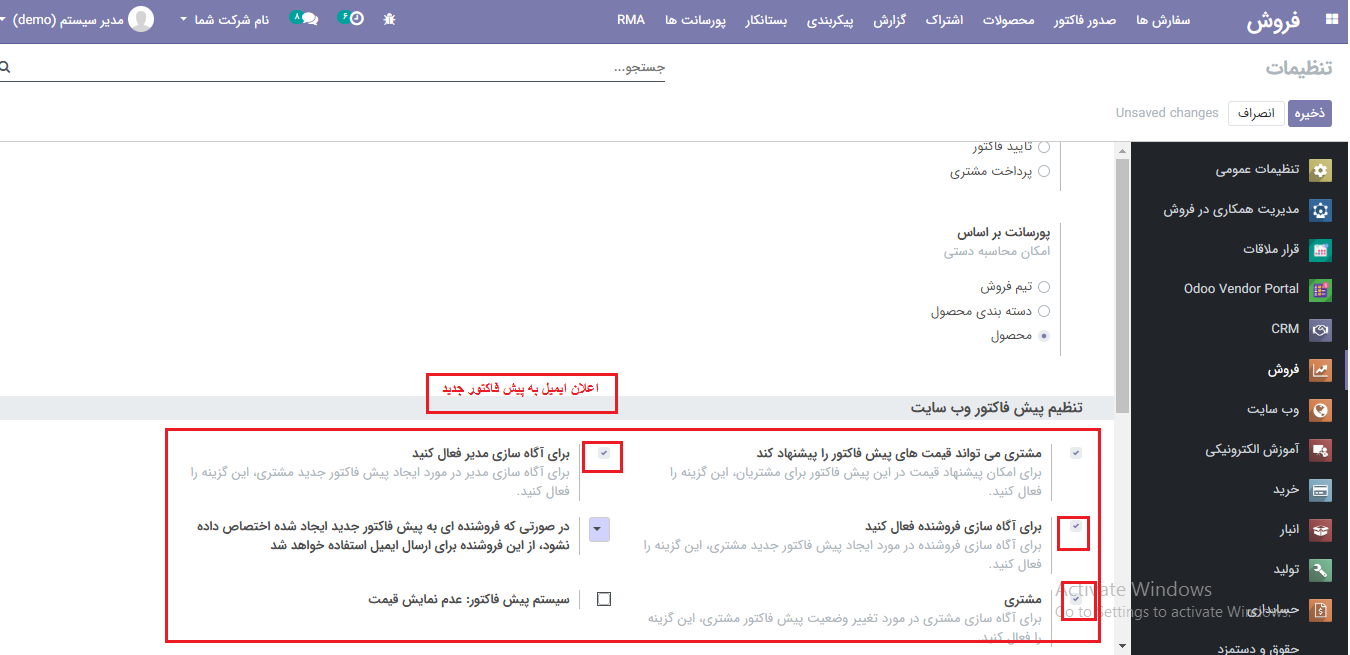 مدیر می تواند سیستم پیش فاکتور را در محصولات مورد نظر خود فعال کند.