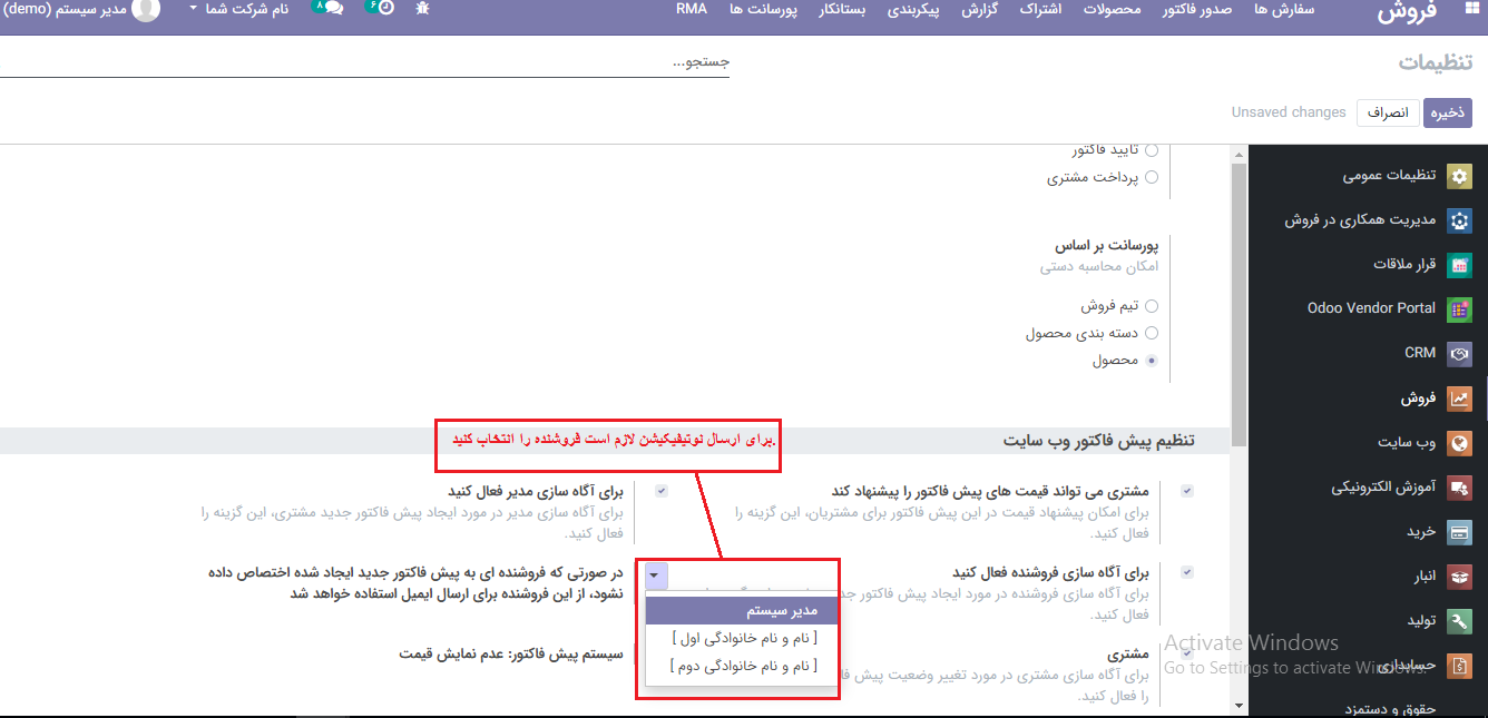با فعال کردن آگاه کننده ها در مورد درخواست پیش فاکتور جدید که برای مدیر و فروشنده است می توانید مدیر را در اولین فرصت در جریان درخواست های ثبت شده قرار دهید. همچنین با فعال کردن آگاه کننده ها برای مشتریان به هنگام تغییر وضعیت پیش فاکتور درخواست شده به مشتری کمک می کنید تا سریع از تغییر وضعیت درخواستش با خبر شود.