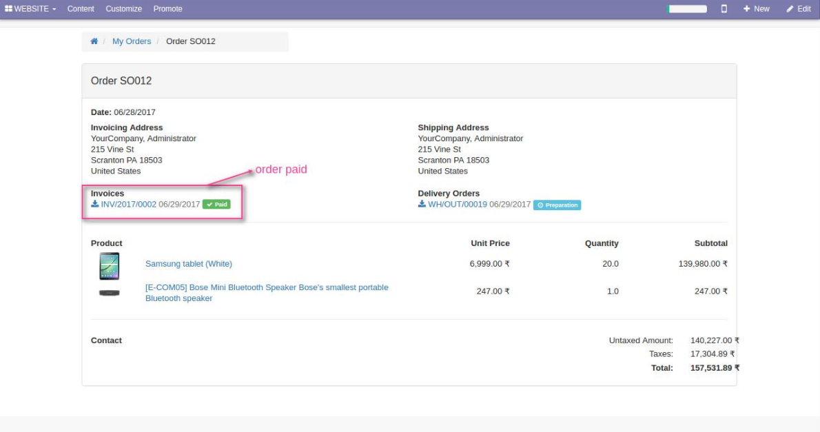 سفارش فروش برای کالای داری پیش فاکتور، ایجاد شده و بعد از پرداخت، وضعیت مربوط به آن به "پرداخت" تغییر پیدا می کند.