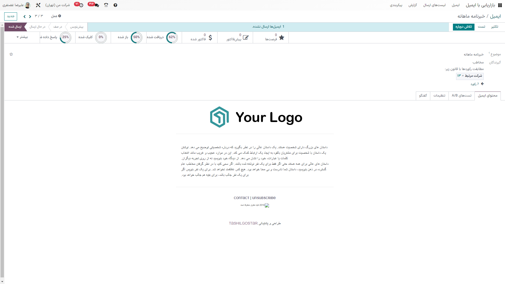 - سیستم جامع بازاریابی ایمیلی با امکان ارسال و پیگیری نرخ تبدیل و تستهای A/B